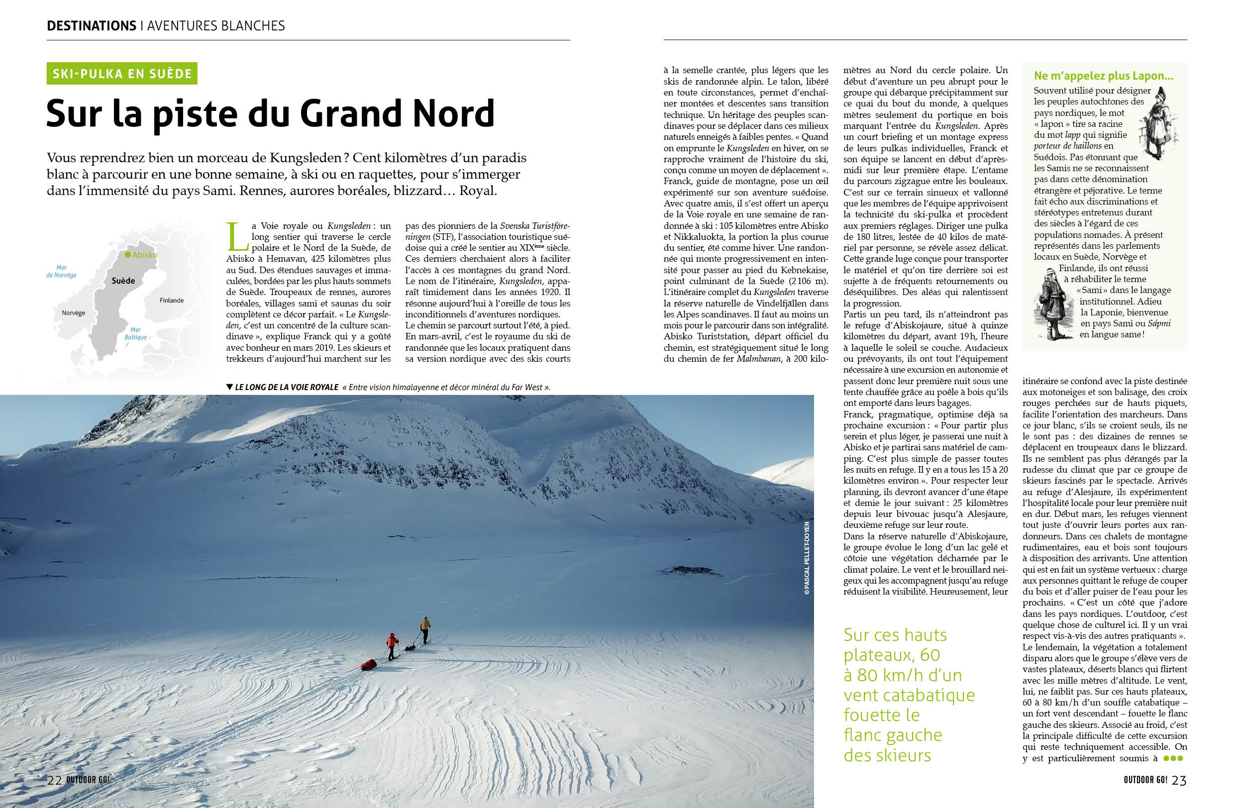 L’agence 66° Nord propose un circuit à ski ou en raquettes de 6 jours entre Abisko et Nikkaluokta. Grand Angle propose le même itinéraire avec une variante qui vous permettra de passer la nuit dans la vallée de Sinji. Un format en 7 jours est possible avec Aluna Voyages, une agence auvergnate.