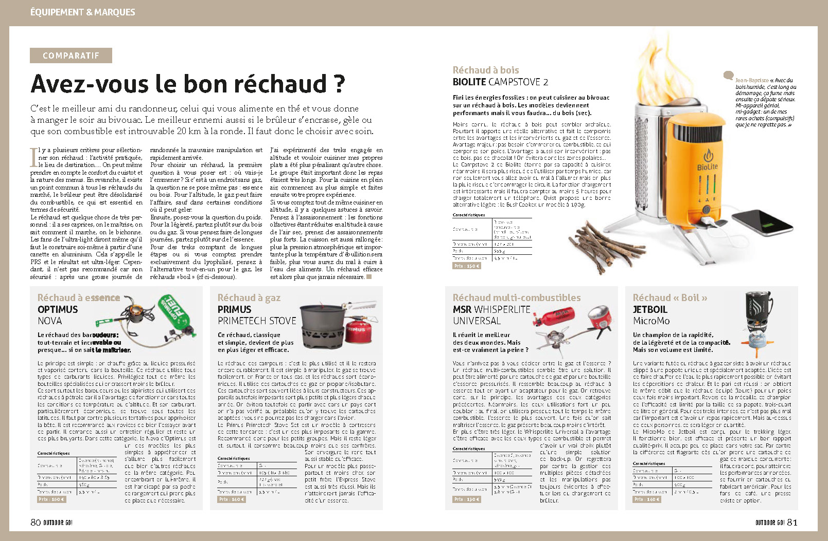 Marques : Optimus, Primus, MSR, Jetboil, Biolite