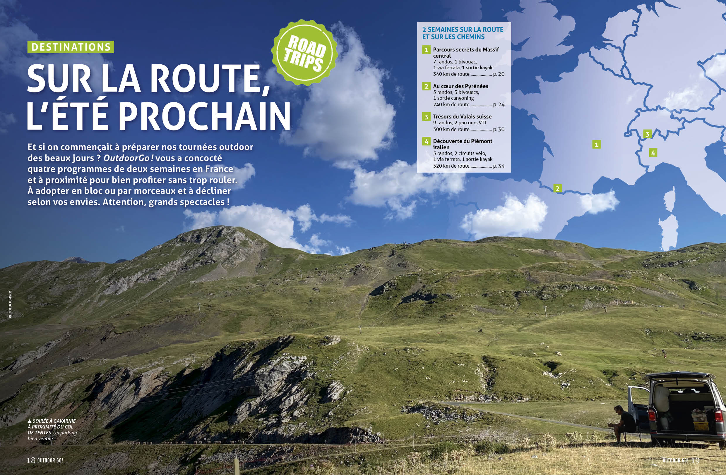 – Destinations : 4 road-trips pour l’été, à travers le Massif Central, les Pyrénées, le Valais et le Piémont italien.