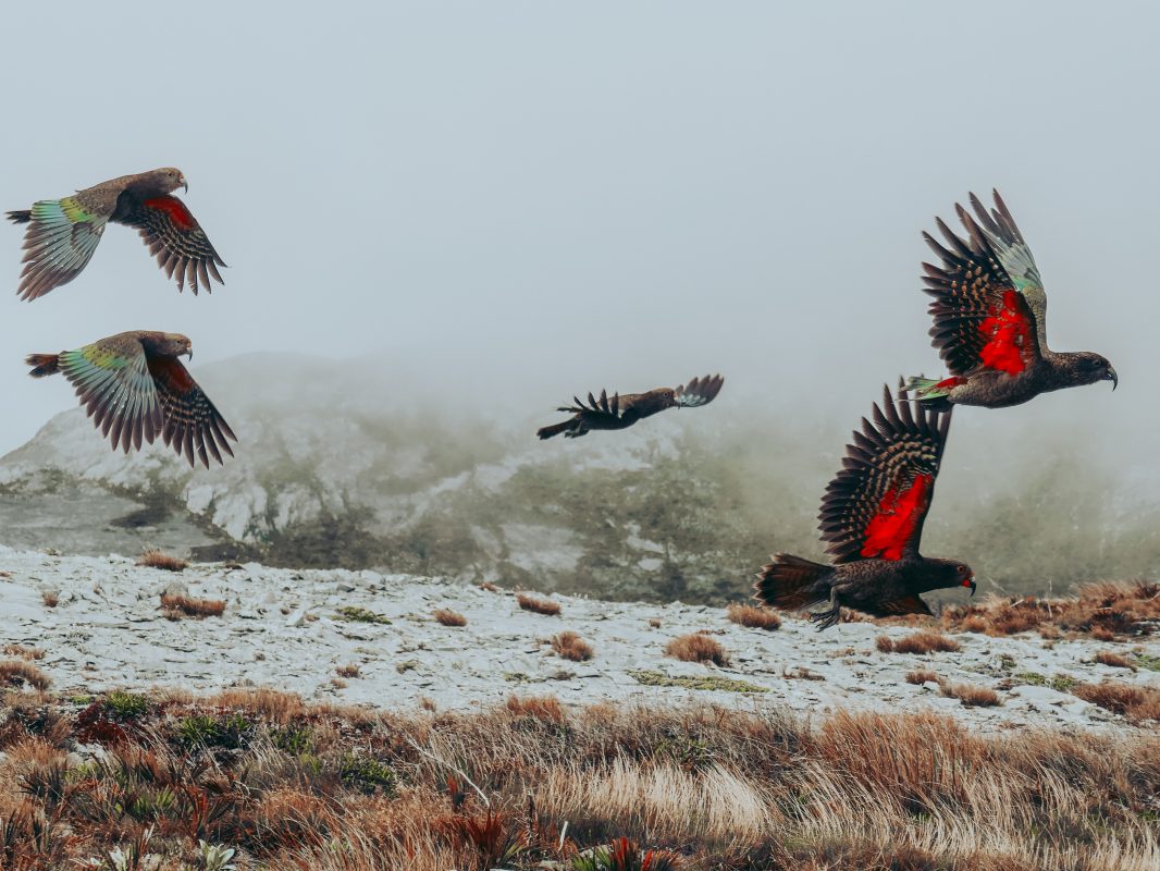 Description: En Nouvelle Zélande, les keas m'ont offert un spectacle magnifique lors d'une randonnée dans la région de Tasman sur l'île du Sud. Un brin effronté (voleur il paraît) c'est le seul perroquet au monde à vivre dans les montagnes. Certains les détestent, moi je les adore. Majestueux.