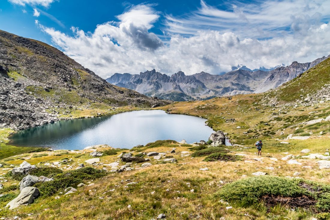 Description: En route vers le Pic Blanc, c’est une variante musclée pour rejoindre les refuges du Chardonnet à celui de Laval, mais par les lacs c’est trop beau !