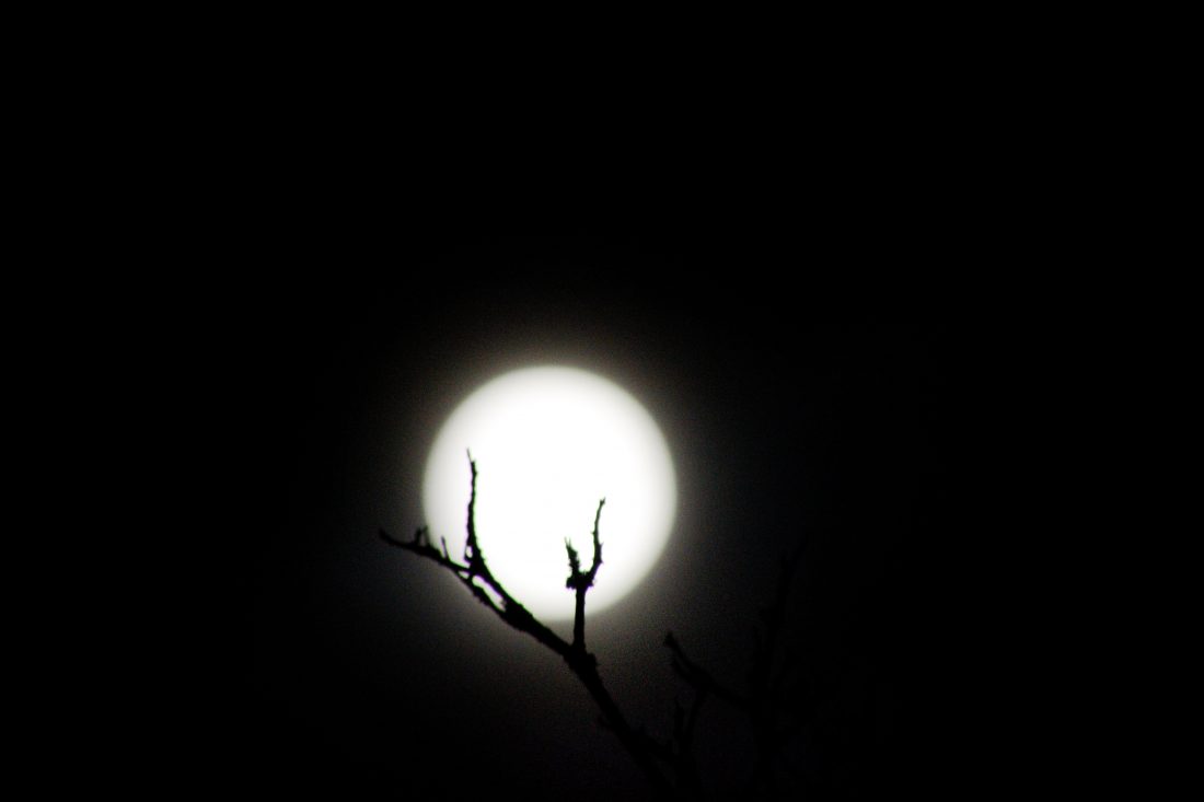 Description: Photo prise depuis chez moi pendant le confinement. Ombre chinoise d'une branche d'arbre sur la lune