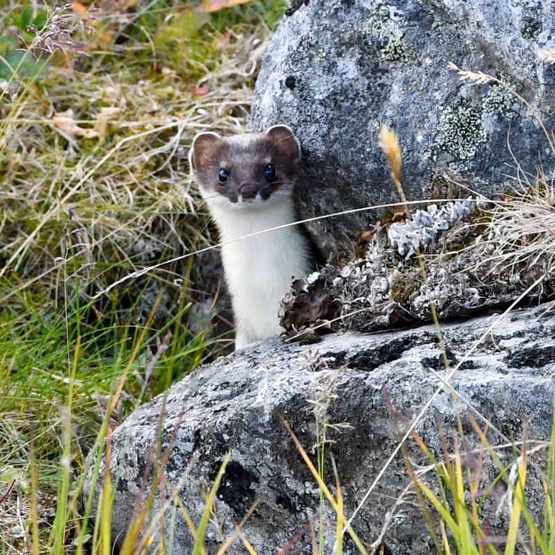 Description: Une hermine pointe le bout de son nez sur le sentier du Kungsleden (Suède).