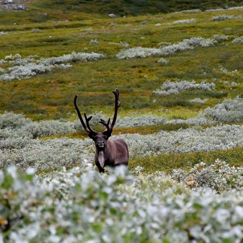 Description: Un renne surpris pendant son repas, aux abords du Kungsleden (Suède).