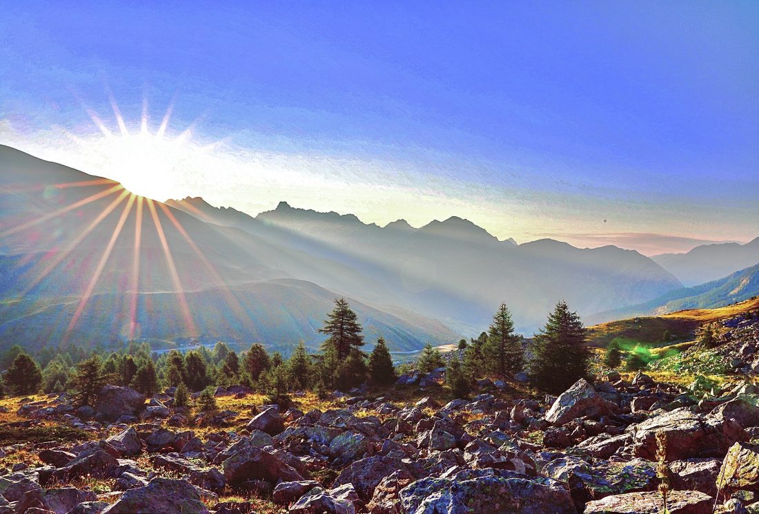 Description: Premières lueurs du soleil caressant le Col de Vars un matin d’Août…