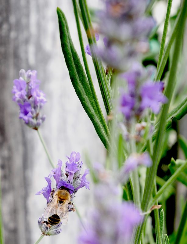 Description: Abeille italienne sur brin de lavande – Dolomites