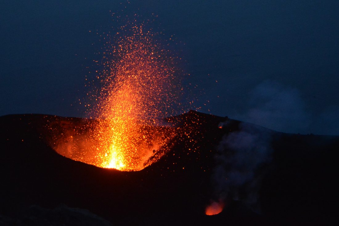 Description: Eruption volcanique nocturne au sommet du Stromboli (It), quelques semaines avant l'éruption meurtrière de 2019.