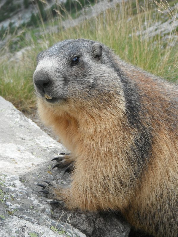 Description: Marmotte rencontrée au printemps entre le Pré de Mme Carles et le refuge des Ecrins lors d'une marche d'approche vers le Dôme des Ecrins en 2013.