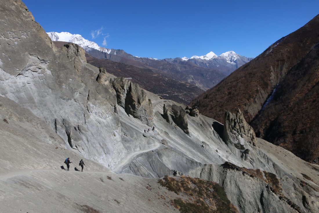 Description: Photo prise sur le trajet entre le lac de Tilicho (4920m) et la petite ville de Shrikharka (3734m), avec un dévers parfois impressionnant.