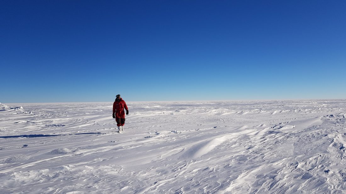 Description: Glaciologue et chef de base Cyprien Verseux près de la base Concordia en Antarctique