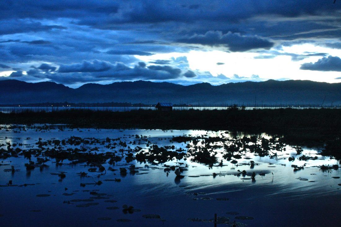 Description: Après une semaine de trek dans les montagnes de la Birmanie, arrivée en fin de journée au bord Lac Inle où le soleil couchant nous offre un spectacle magique!