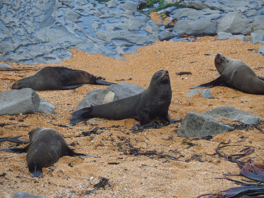 Description: Rencontre avec des lions de mer que l'on peut voir régulièrement sur les côtes neo zelandaise .