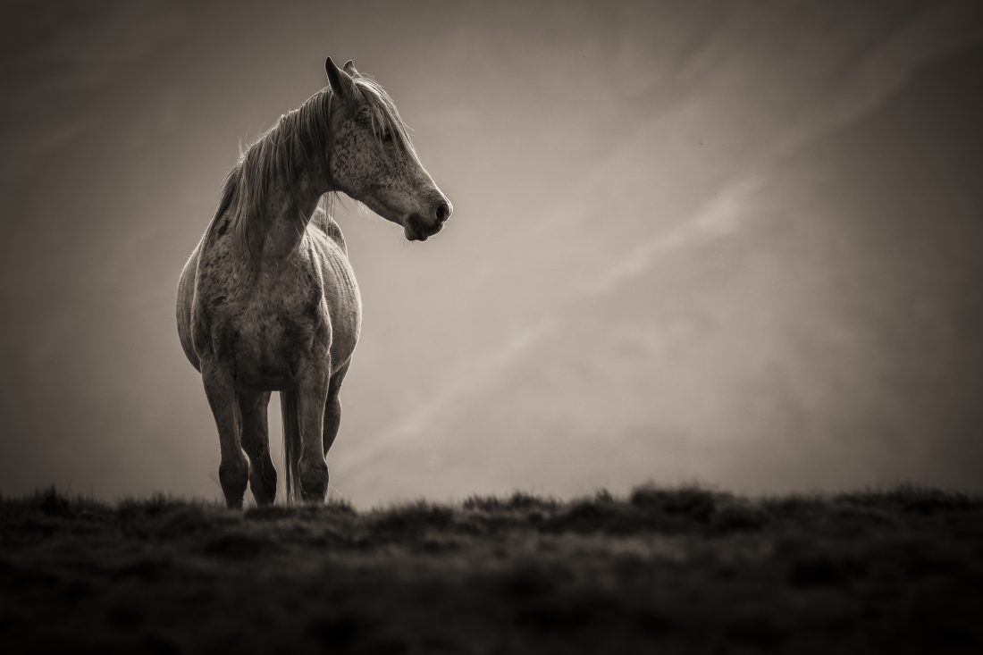 Description: Iparla, premier sommet basque de 1000 mètres depuis l'océan, un cheval comme une apparition