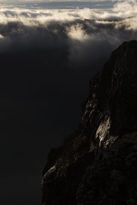 Description: Cette photo a été prise le même jour que "Contraste". Comme un cadeau, le ciel s'est dégagé en fin de journée nous offrant un magnifique coucher de soleil. Comme il avait plu une bonne partie de la journée, la falaise était luisante et reflétait cette belle lumière, tandis que le reste de la vallée commençait sa nuit et que les nuages épars s'accrochaient aux crêtes.