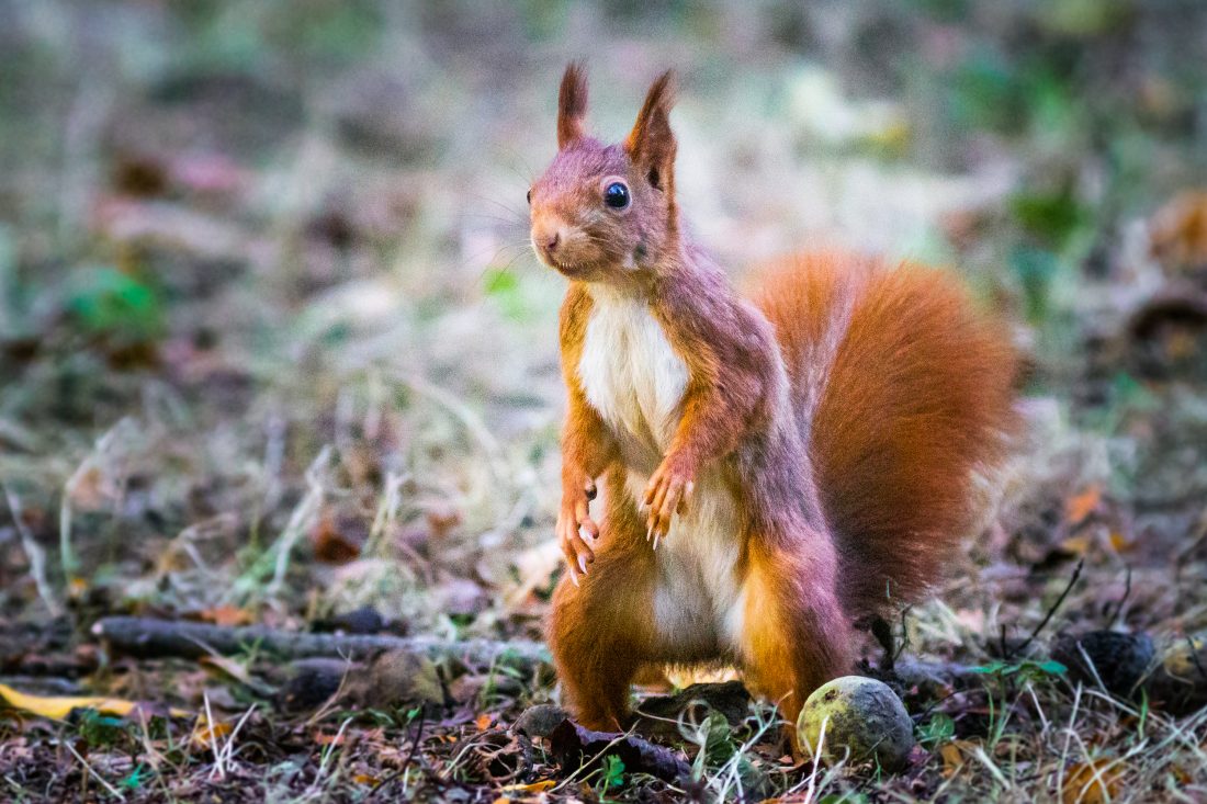 Description: Les écureuils sont des animaux vifs et il n'est pas simple de s'y approcher. Cependant, courant octobre, ils n'hésitent pas à descendre de leurs arbres pour aller chercher les fruits tombés au sol. C'est le meilleur moment pour les photographier à la même hauteur qu'eux !