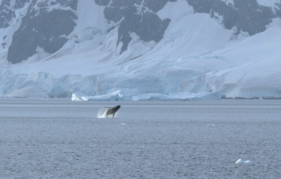 Description: Au nord de la péninsule antarctique, le soir tombe sur Paradise Bay. C'est l'heure pour les baleines à bosses de se nourrir. Autour du bateau, l'une d'entre elles saute de l'eau pour attraper un maximum de krill entre ses fanons, d'une seule goulée!