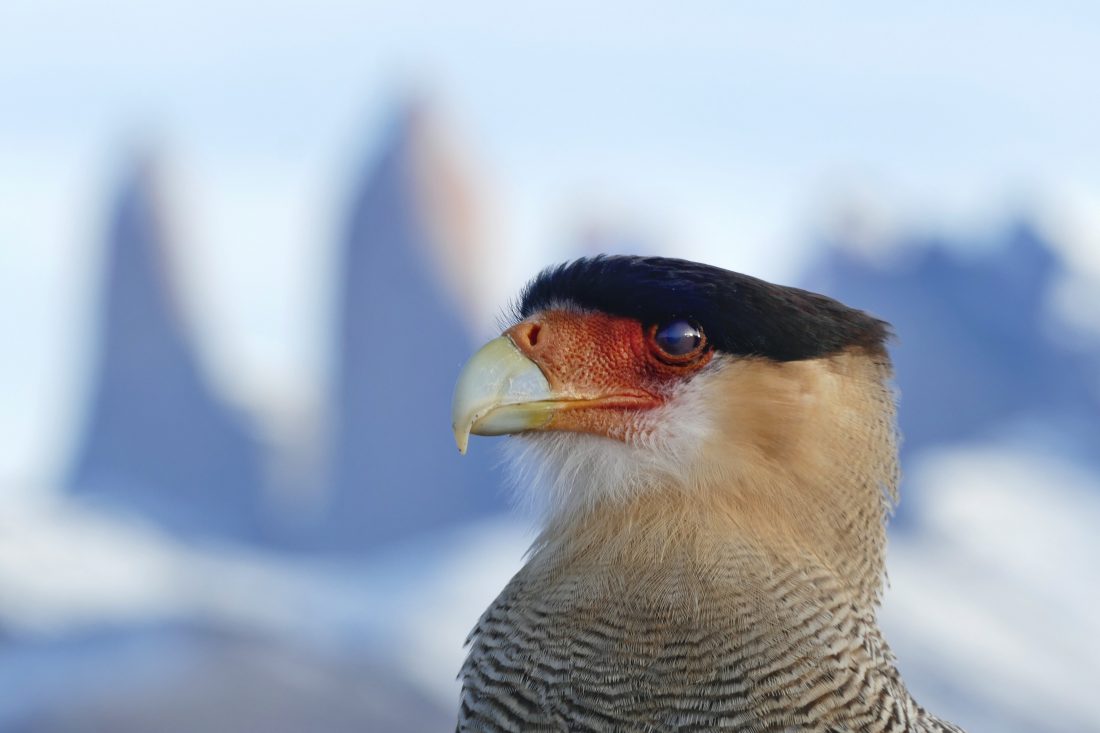 Description: Un Caracara huppé juste devant les Torres del paine..