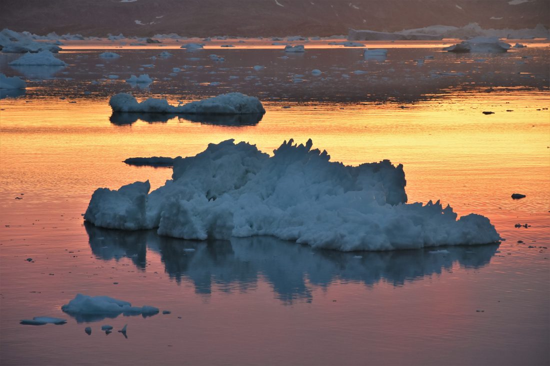 Description: Photo d'un iceberg dans le fjord Sermilik, dans l'Est du Groenland, pris au coucher du soleil.
