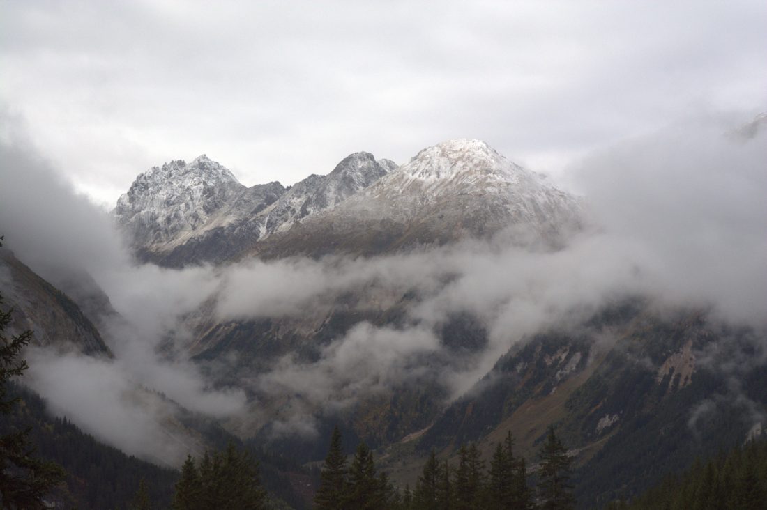 Description: Le petit Mont Blanc de Pralognan la Vanoise encadré par les nuages lors de la montée au col de la Vanoise, début octobre.