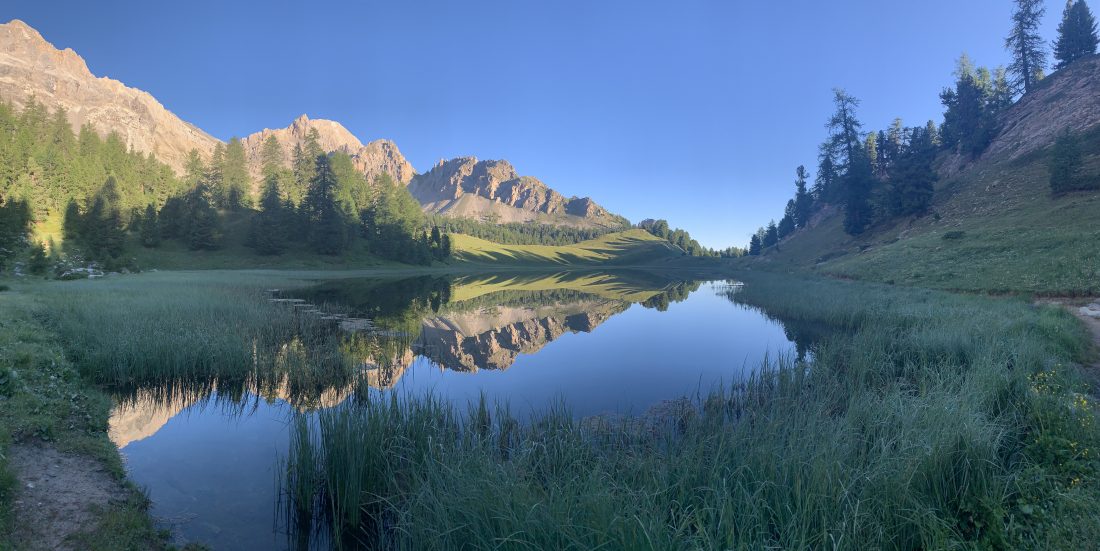 Description: Lors de ma traversée des Alpes, du 30 juin au 18 juillet 2019, j'ai eu la chance d'admirer des paysages exceptionnels. Ce magnifique lac au dessus de Ceillac me laissa un fabuleux souvenir, tant il portait bien son nom. cette photo fut prise le matin tôt, juste au moment du départ.