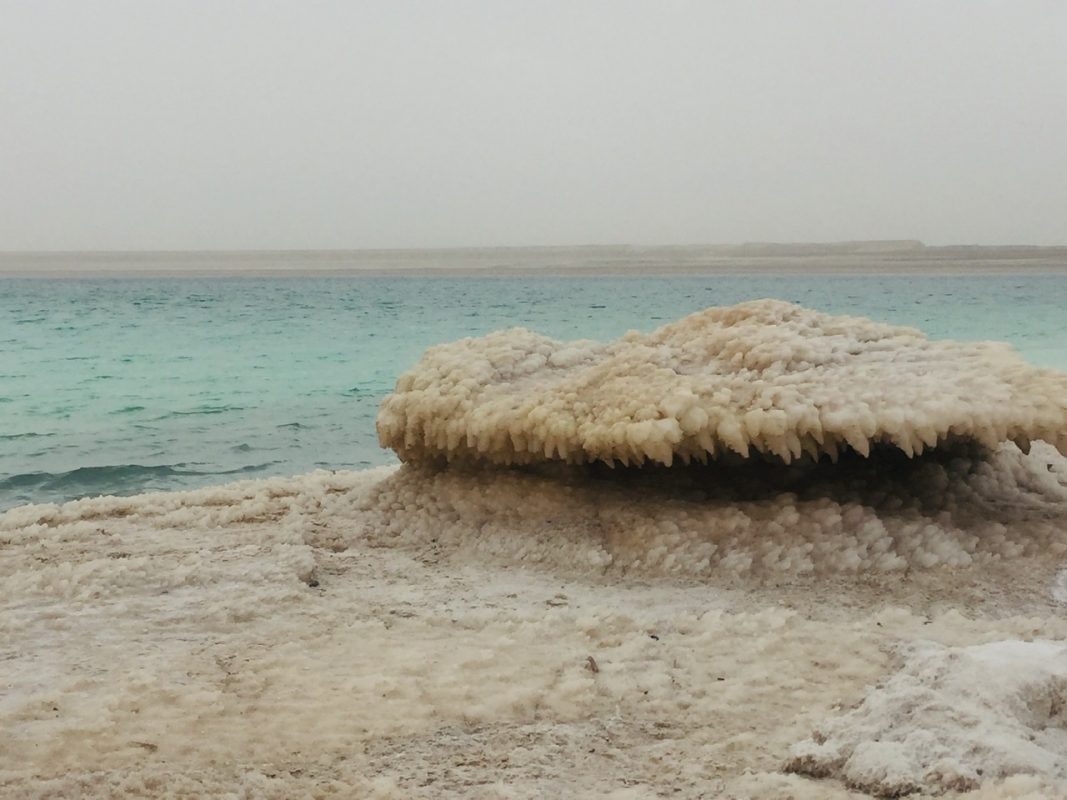 Description: Formation de sel au bord de la mer morte en Jordanie
