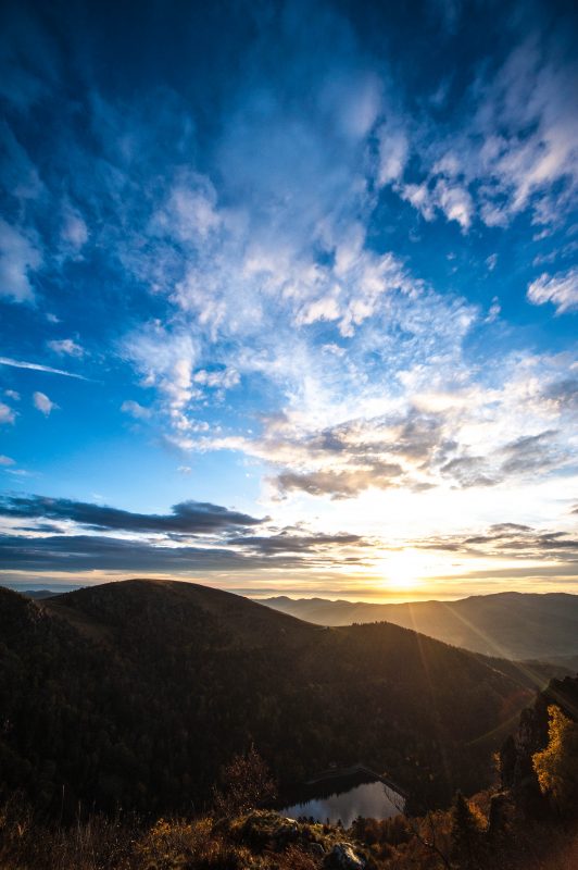 Description: lac noir , cretes vosgiennes , au lever du soleil