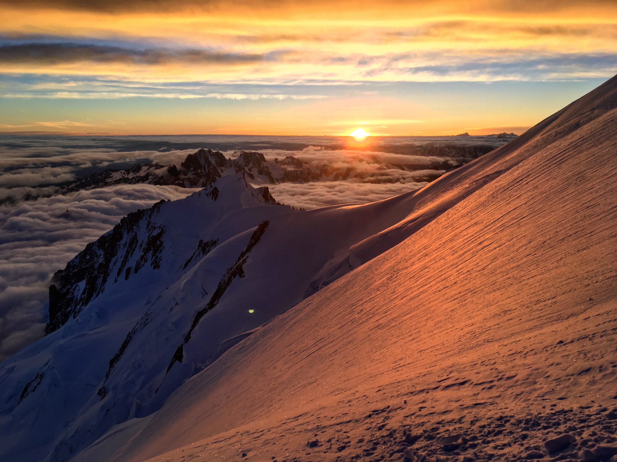 Title: Montée aux aurores dans le Massif du Mont Blanc