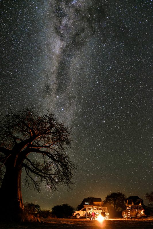 Description: Lors d'un trip 4×4 pour visiter le Botswana, nous avons ce soir là posé notre campement sur Kubu island. Tel un mirage, cet ilot de roche et baobabs se dresse au milieu d'un immense désert de sel, le Makgadikgadi Pan. Aucune polution lumineuse à des dizaines de kilomètres à la ronde, la voie lactée nous crève les rétines, l'ambiance est dingue.