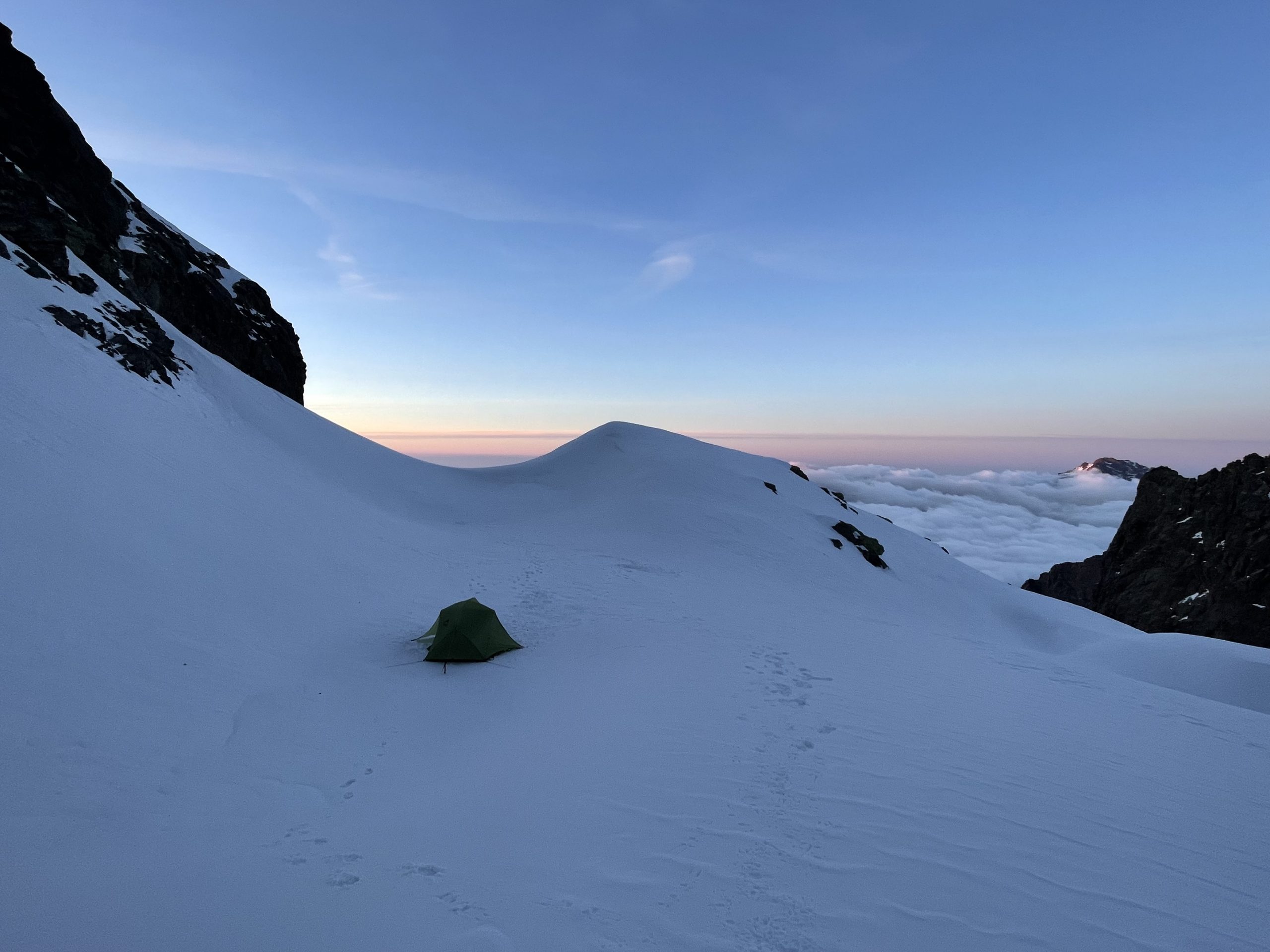 Description: petit bivouac improvisé entre le canto et le cirque de la solitude