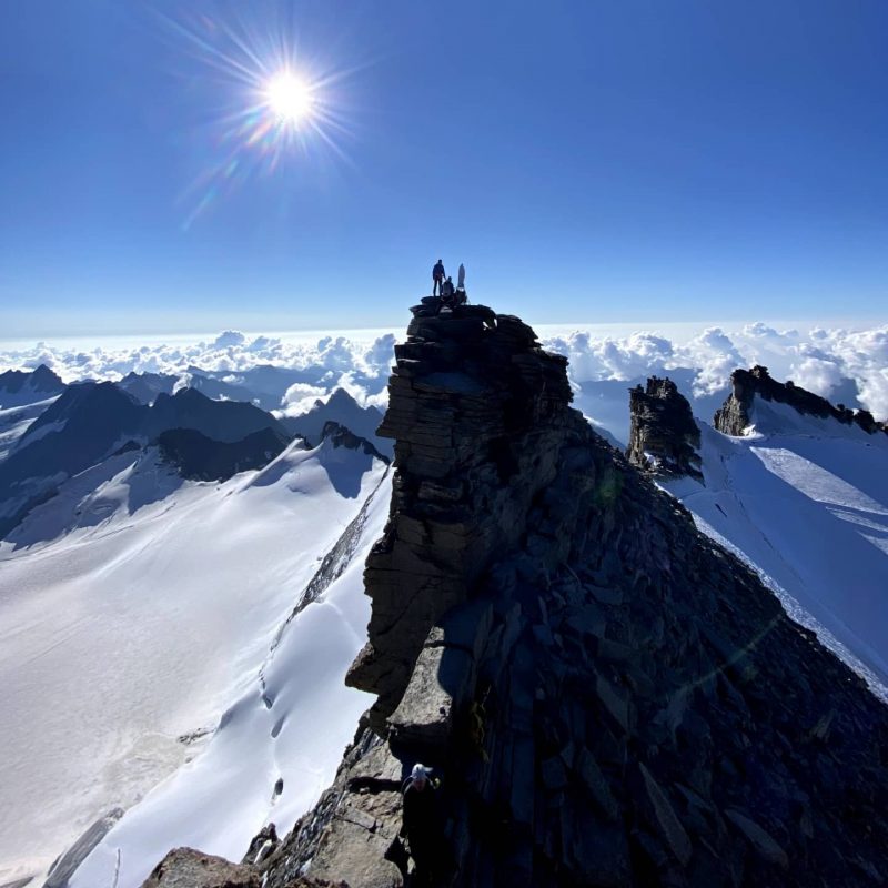 Description: Le grand Paradis est un sommet de 4061m situé dans le massif du même nom, en Italie. C'est l'un des 4000m les plus facile des alpes. Une marche d'approche permet d'atteindre le refuge Vittorio Emanuele II. Ensuite, et en fonction de la saison, différents itinéraires sont possibles. Il s'agit d'une course mixte. Après une longue remontée de glacier, l'ascension se termine par une courte arrête rocheuse, facile mais aérienne. Nous sommes monté par la voie normale et redescendu par la via ferrata qui relie la Schiena d'Asino (la Croupe de l'âne) au plateau de Lauzes. Nous avons réalisé cette course avec un guide à qui nous avions demandé d'évoluer en autonomie y compris en ce qui concerne l'orientation. (C'est la raison pour laquelle nous nous sommes perdus en début d'ascension). Vidéo de l'ascension : https://youtu.be/VvTlCZof1jw