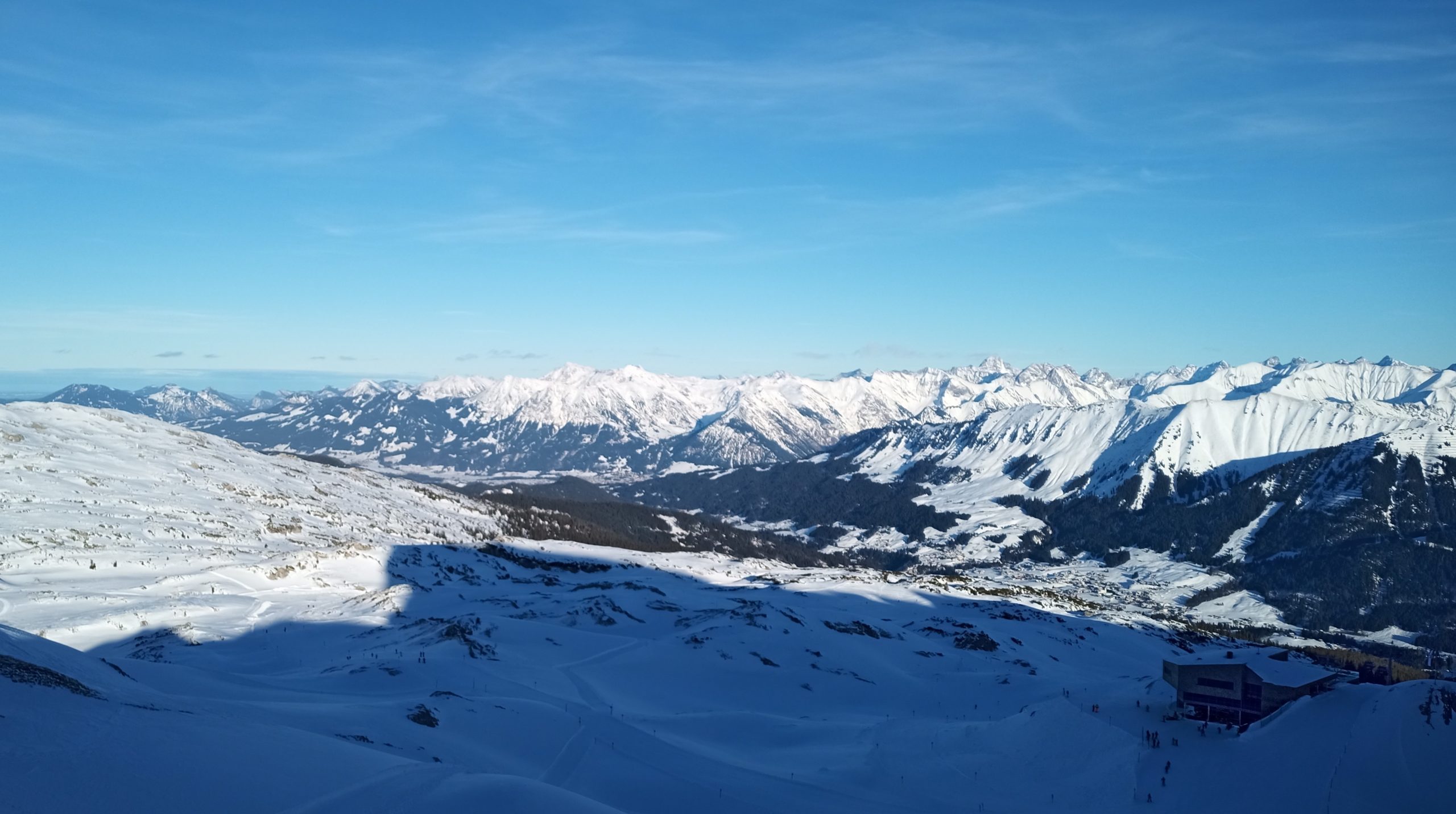 Description: Vue de la chaîne de sommets à la frontière entre l'Autriche et l'Allemagne avec la grande plaine européenne en arrière plan. Le point de vue a été atteint en montant 100m après avoir pris l'Ifenbahn.