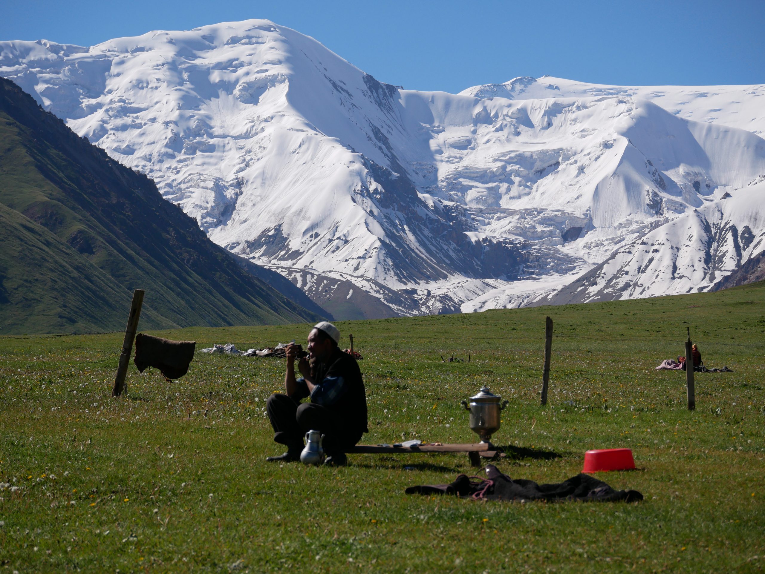 Title: Région du pic Lénine : nomade kirghize en pleine séance de rasage