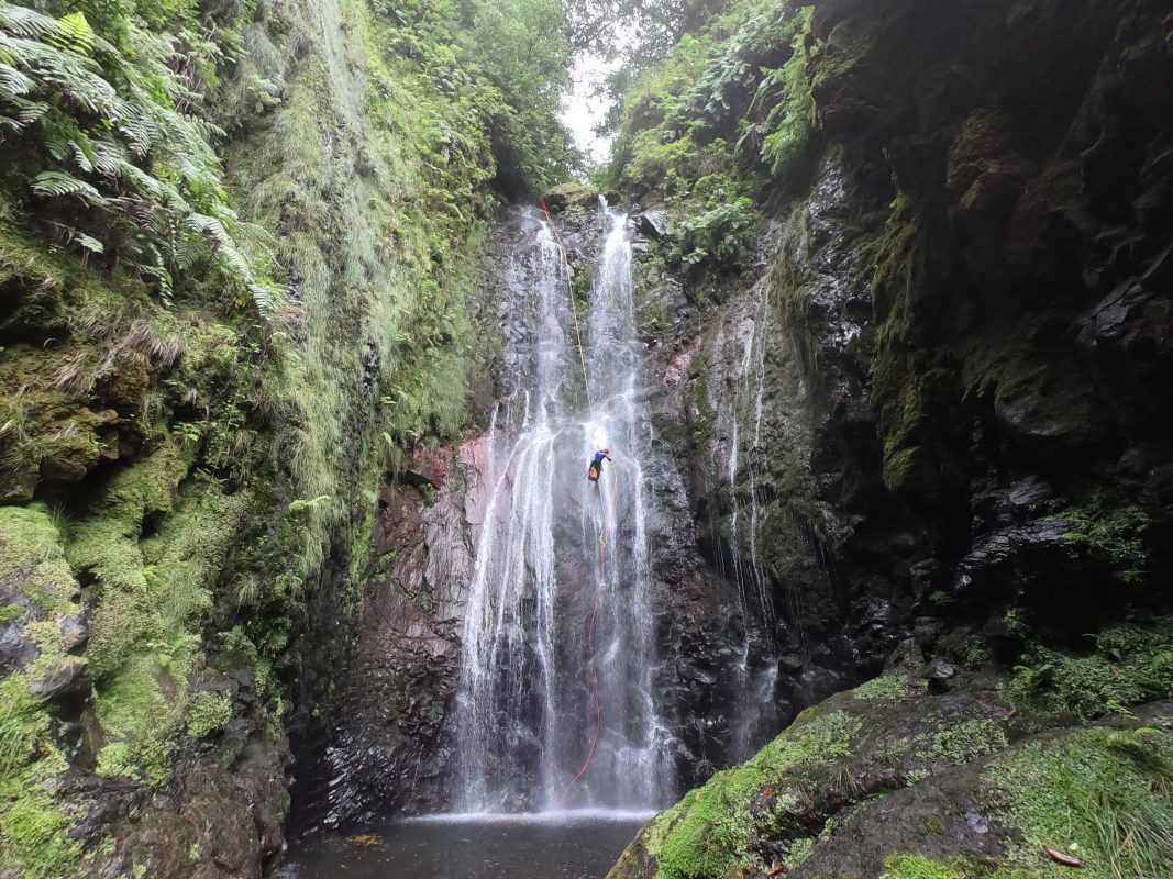Description: Descente de canyon sur l'île de Madère, au sein d'une végétation luxuriante.