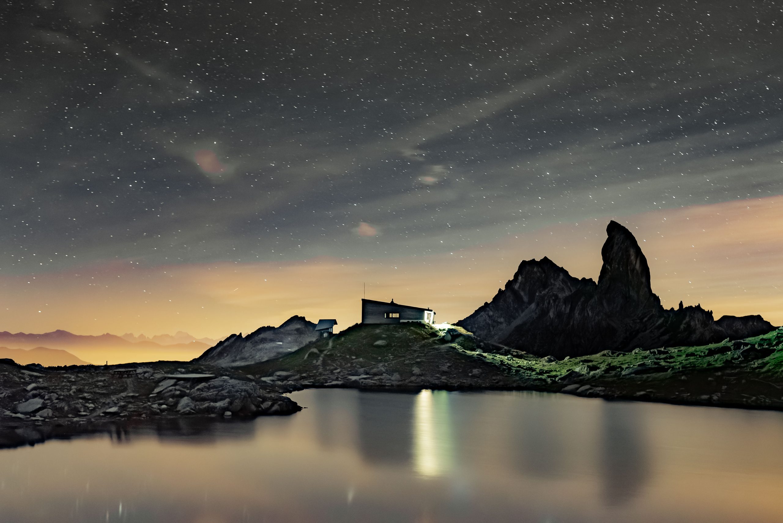 Description: Une nuit étoilée au lac de Presset, face a la PIERRA MENTA.