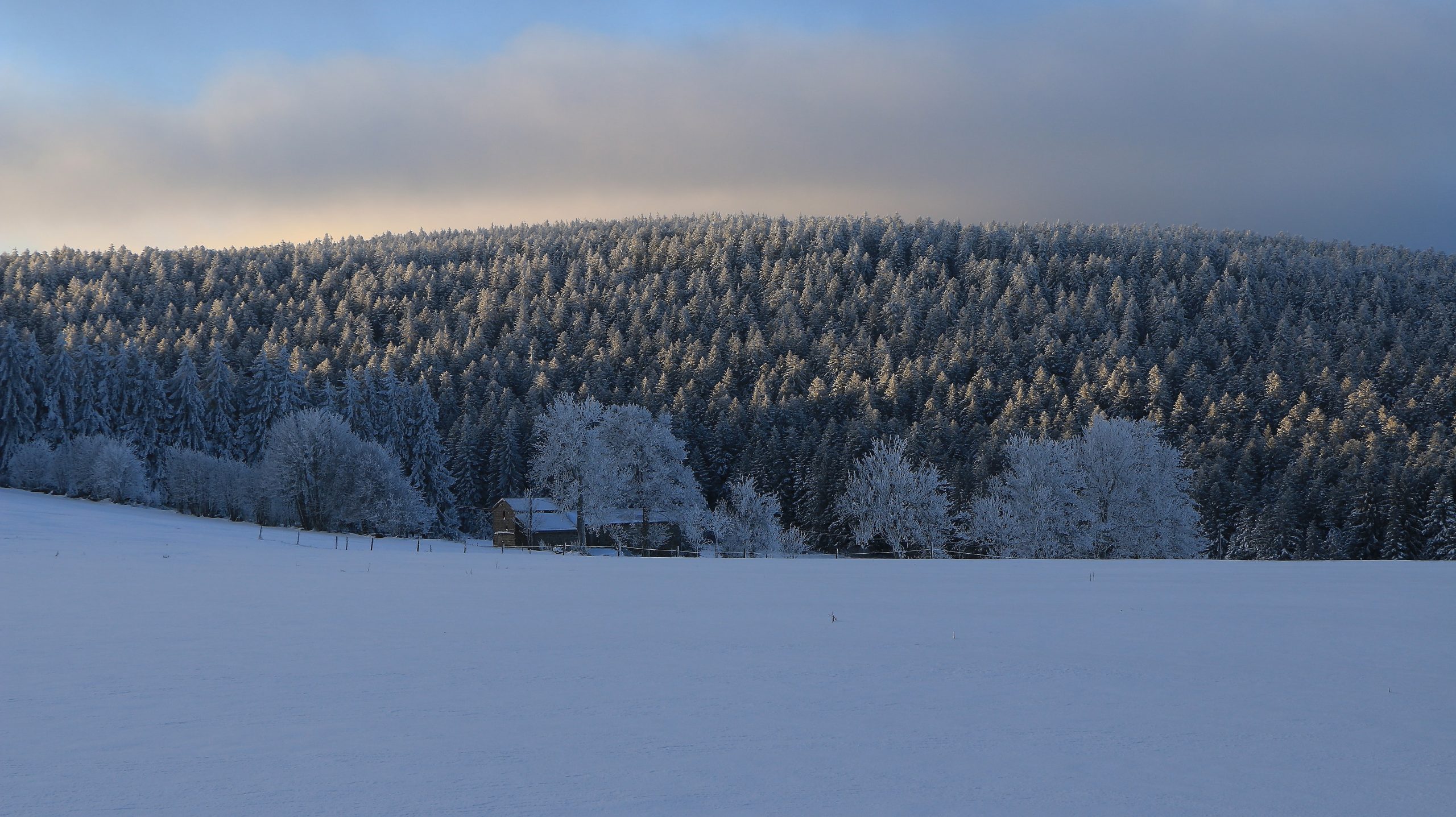 Description: Quand la la sapinière s'enflamme grâce à la lumière matinale et nous réconcilie avec le lever aux aurores par -10°C.
