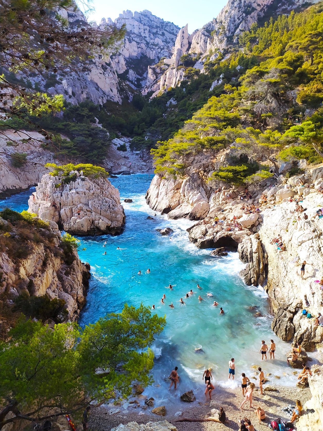 Description: vent du sud dans les calanques, la baignade est tout à coup plus délicate mais quel bonheur ! randonnée familiale en septembre 2021.