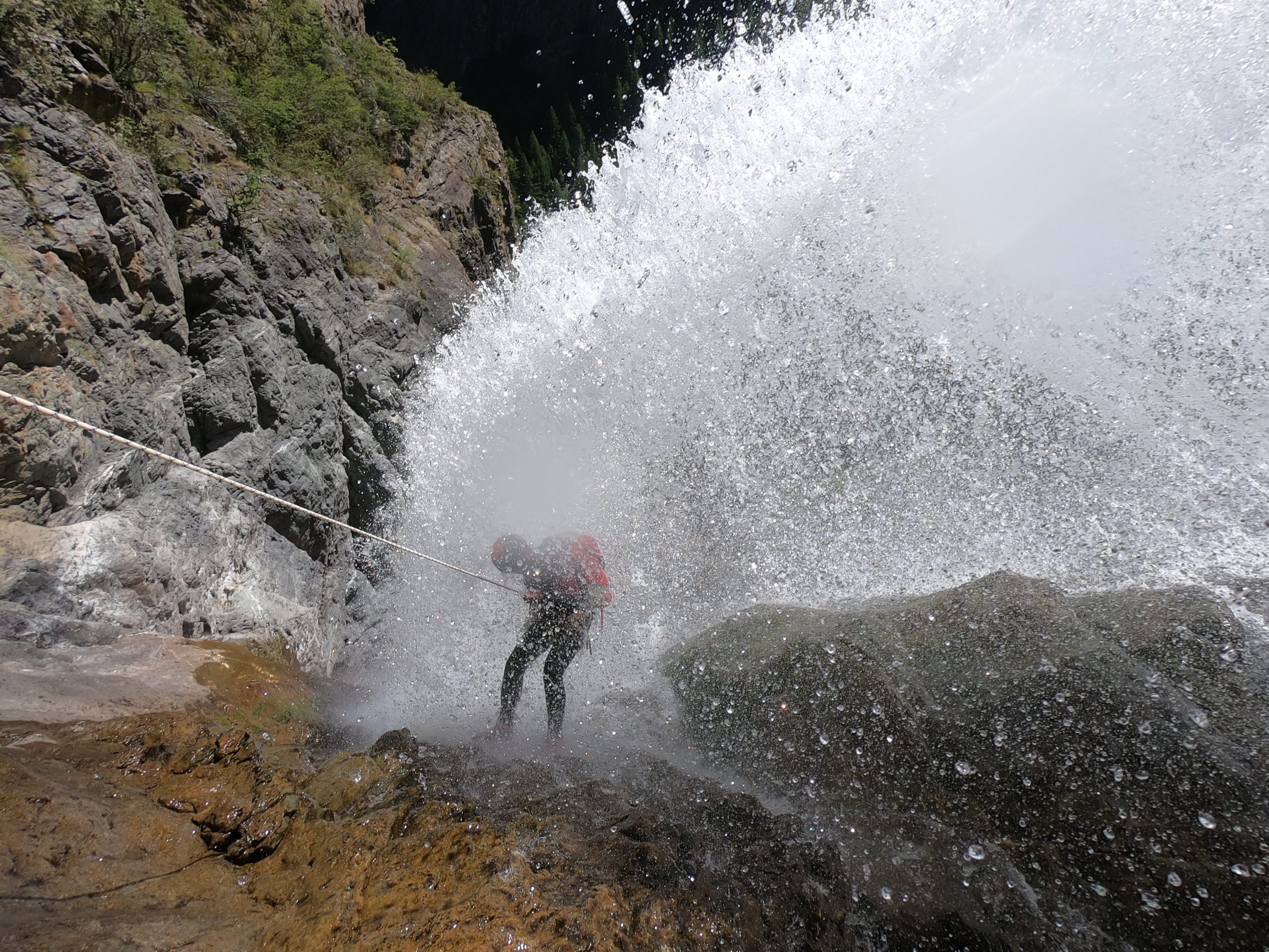 Description: Descente en rappel dans la verticale de 60m du torrent de Chichin. Un des canyons les plus durs de France avec une eau glaciale !