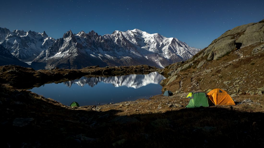 Description: 23 novembre 2021, Alors que les copains avaient rejoint les bras de Morphée, n'ayant à mon tour pas encore trouvé le sommeil, je me suis mis à contempler les étoiles alors que dans un même temps, la lune éclairait tout le Lac des Chéserys ainsi que le massif du Mont-Blanc.