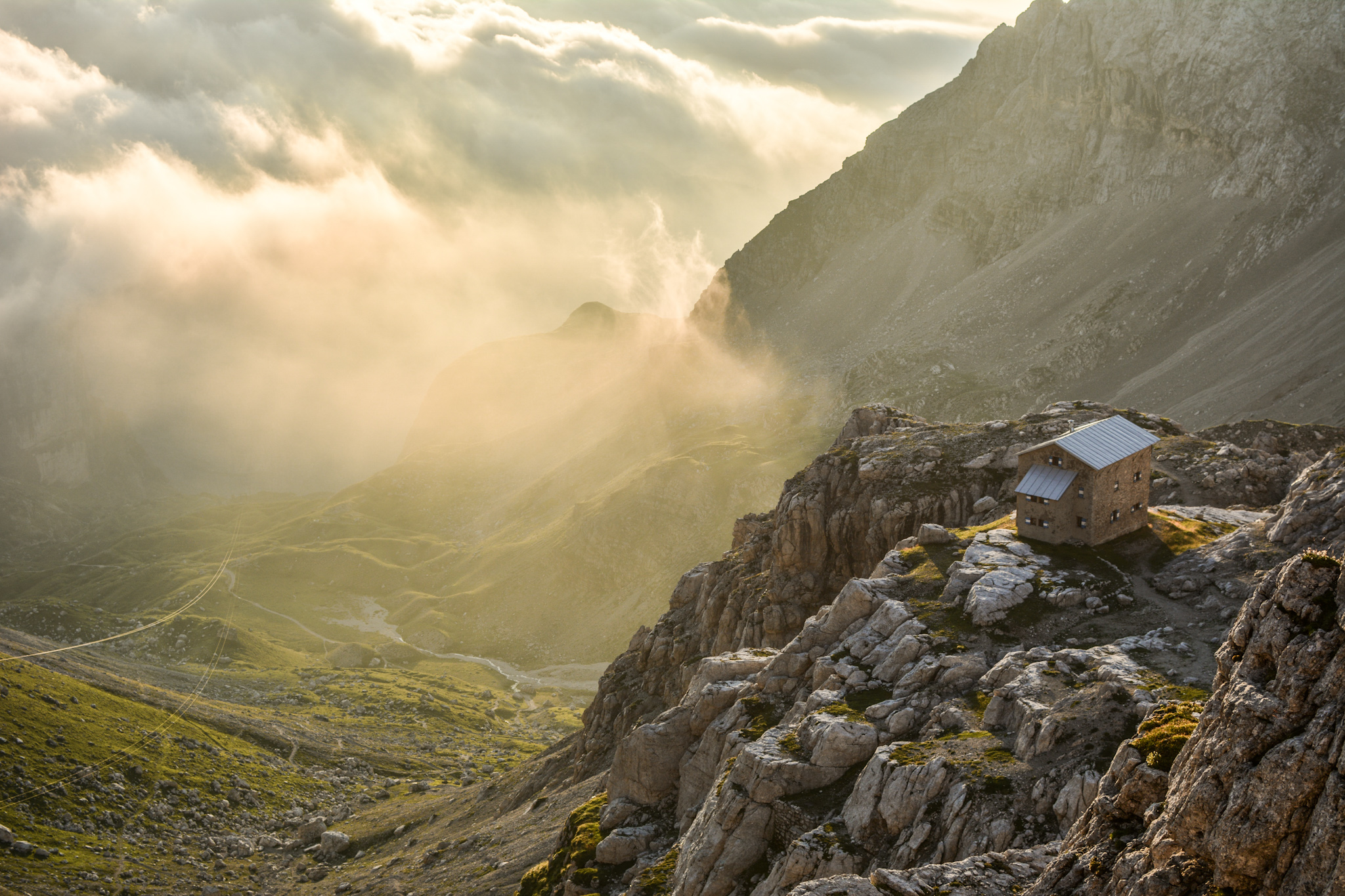 Title: Premières lueurs sur mer de nuage dans les dolomites