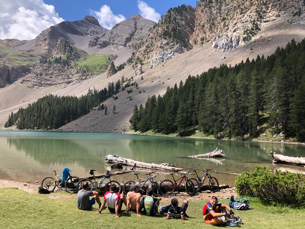 Description: rando VTT en Espagne. Arrivée dans un paysage magique à l'Ibon de Plan en Aragon