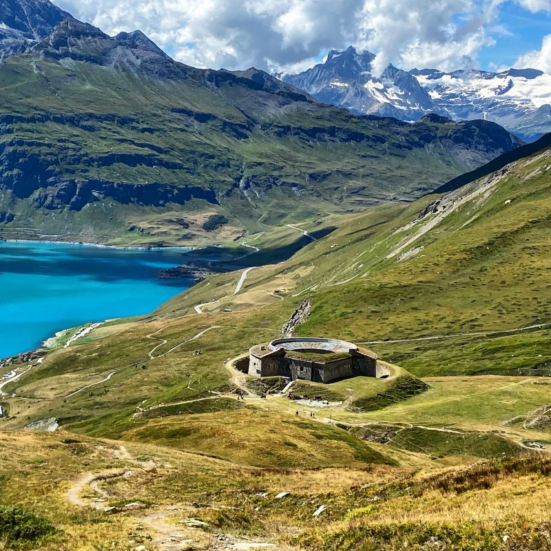 Description: Le fort de Ronce surplombe le lac du Mont Cenis et est surplombé par la Dent Parrachée