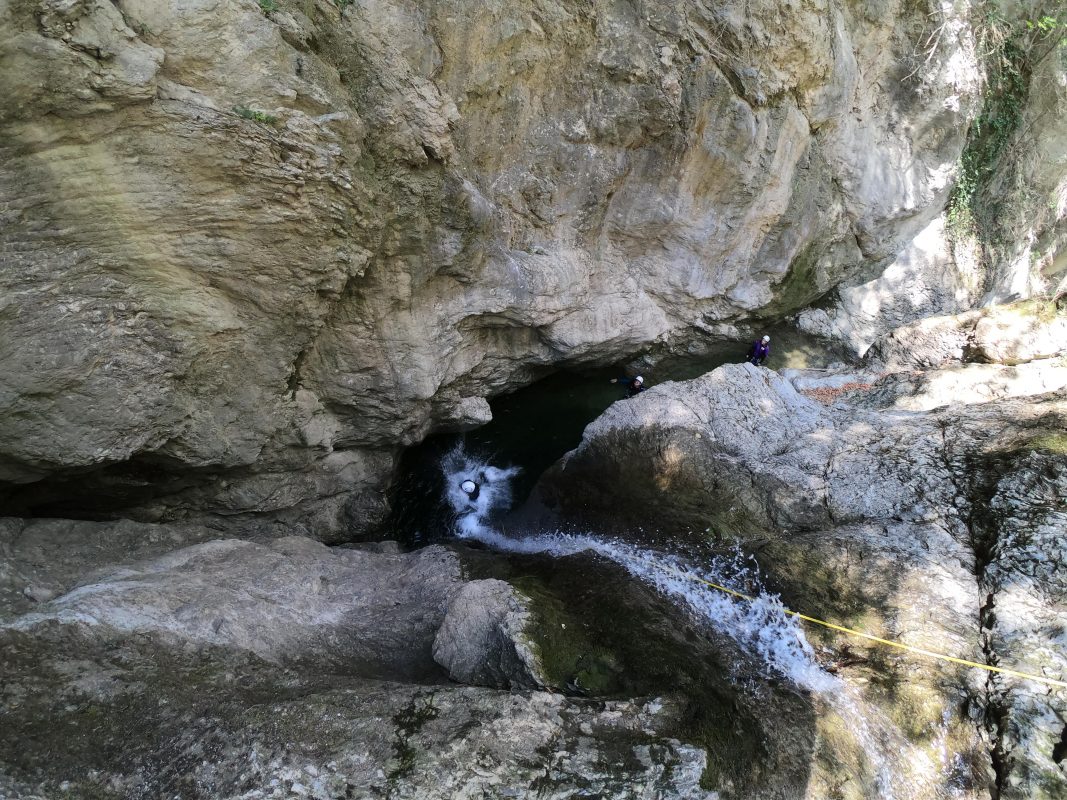 Description: Session canyoning dans le Riou de la Bollène avec un saut où il faut bien viser !