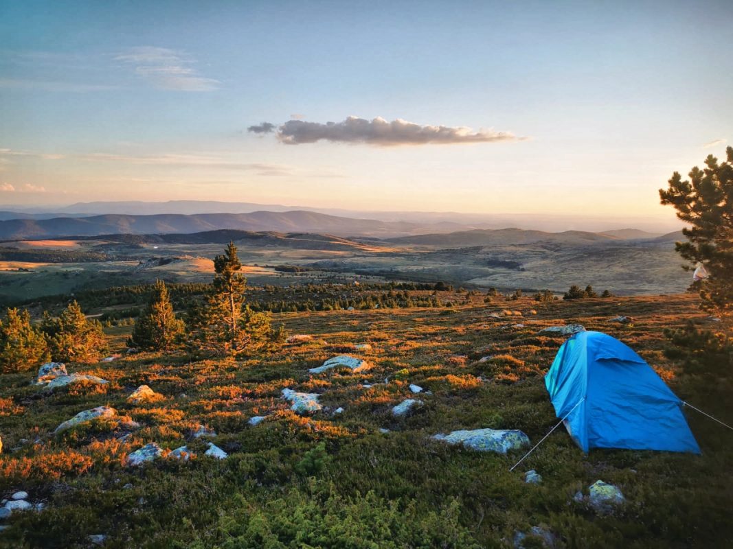 Description: Photo prise au coucher du soleil, juste après avoir monté la tente dans les Cévennes.