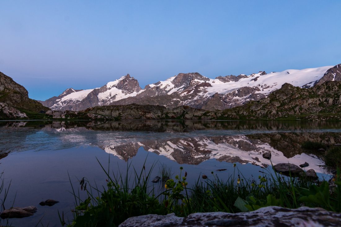 Description: Vue sur la Meije et le dôme du Lauzet depuis le plateau d'Emparis au petit matin après un bivouac