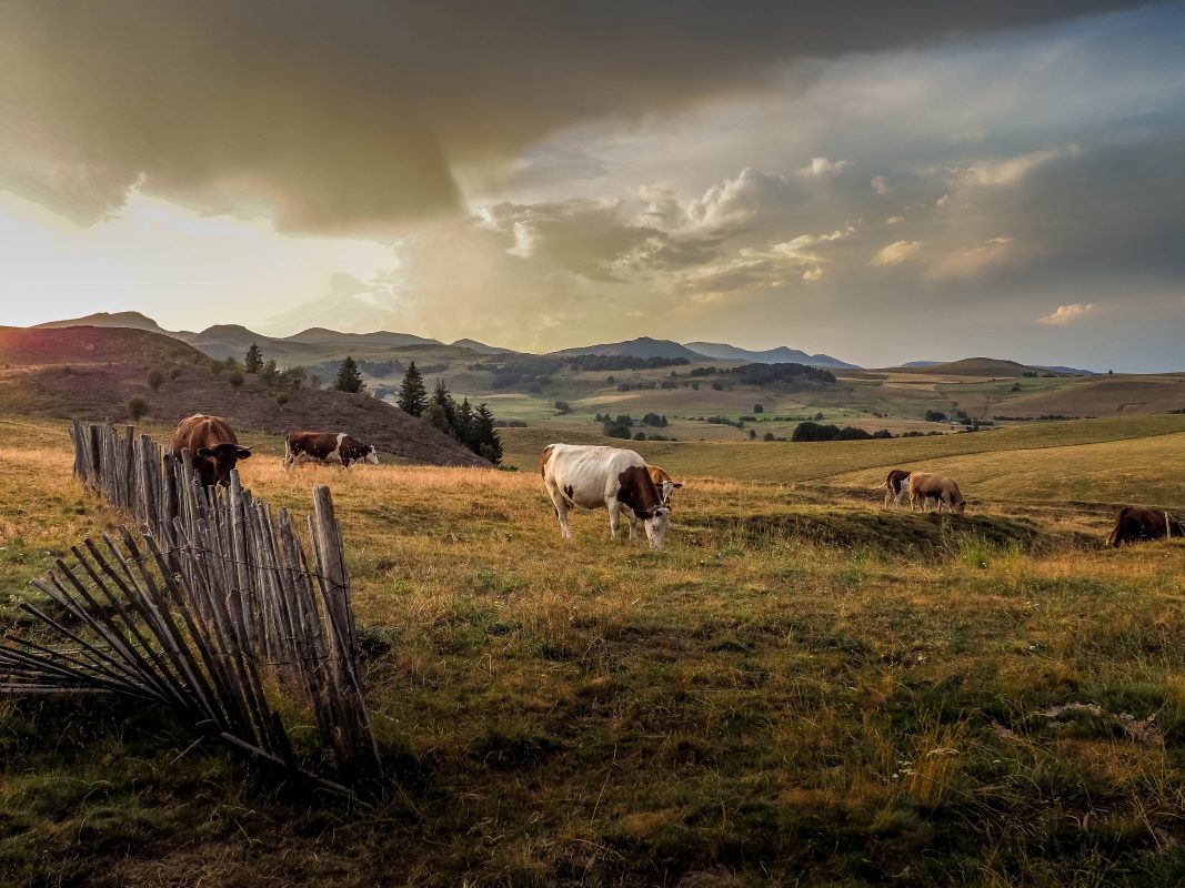 Description: la lumière du soir inonde le relief du puy de Sancy en Auvergne