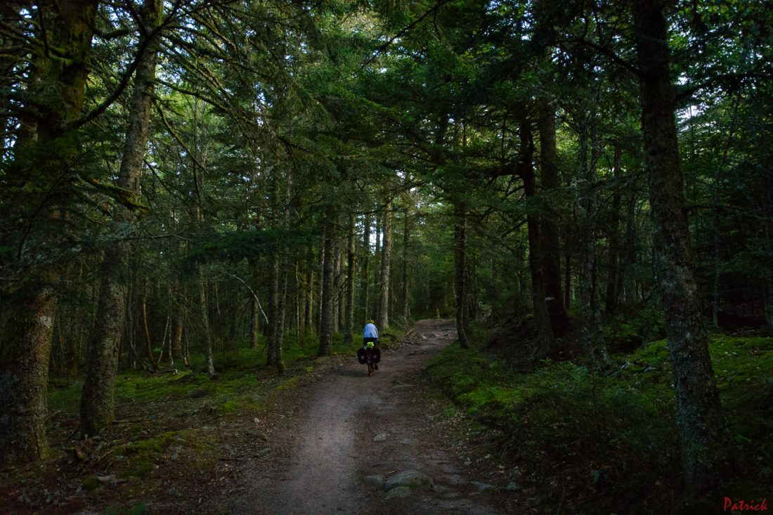 Description: Cyclo-camping en gravel sur le GR3 dans le monts du Forez. Un peu avant Notre Dame de l'Hermitage, au lieu dit "le Lit de la Vierge"