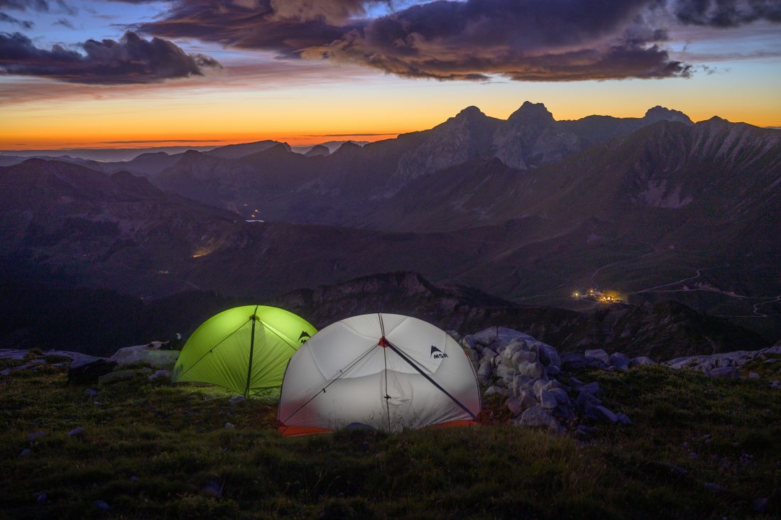Description: un bivouac en semaine après le travail dans le massif des Aravis (Grand-Bornand).