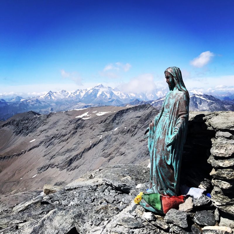Description: Culminant à 3747m d’altitude, cette randonnée offre une vue époustouflante sur les plus grands sommets des Alpes du Nord. Ici, le Mont Blanc en fond.