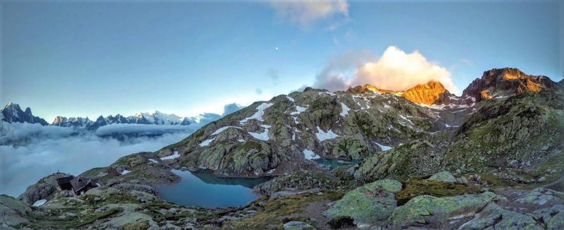 Description: Nous sommes monté un soir d'août pour bivouaquer entre amis au bord du lac Blanc. Nous avons pris une forte pluie sur la fin de la randonnée et lors du montage de la tente, notre effort fût récompensé par le spectacle matinal de la mer de nuage avec le levé du soleil.
