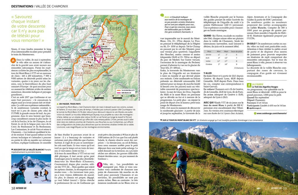 P.39 La photo choisie pour illustrer l’article en bas de page n’a pas été prise sur le tour du mont Blanc mais depuis la commune de La Grave-en-Oisans. Et c’est La Meije qu’on voit au loin.